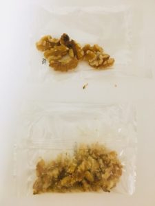 ③②に①を加え、全体的に生地が白っぽくなめらかになるまでしっかり混ぜ合わせ、刻んだクルミを加えてベラで混ぜ合わせる。